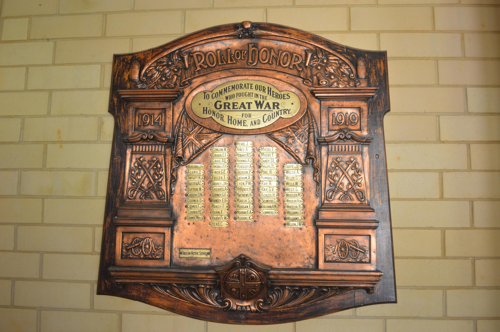 To appropriately acknowledge their service and sacrifice, images of each plaque and memorial have been included on this page, with the corresponding transcribed Honour Rolls presented beneath each image.